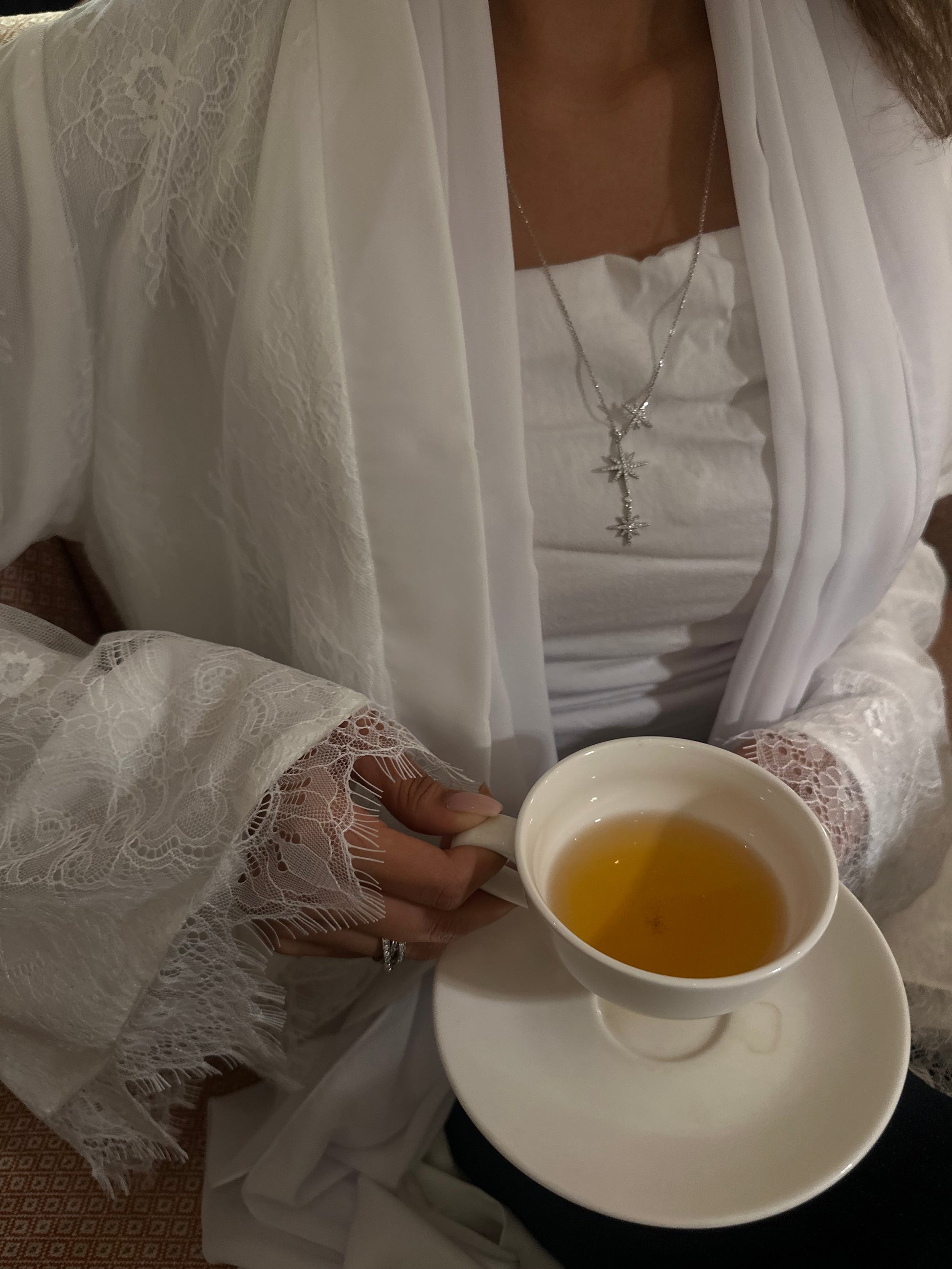 Ready to deliver white lace abaya